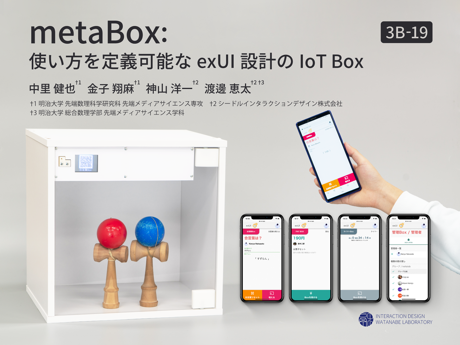中里 健也,金子 翔麻,神山 洋一,渡邊 恵太(2020),「metaBox: 使い方を定義可能なexUI設計のIoT Box」,インタラクション2020論文集 © 情報処理学会 2020,2020,880-881